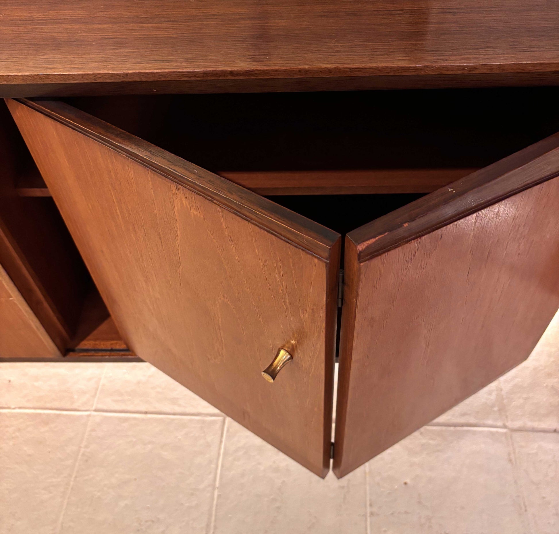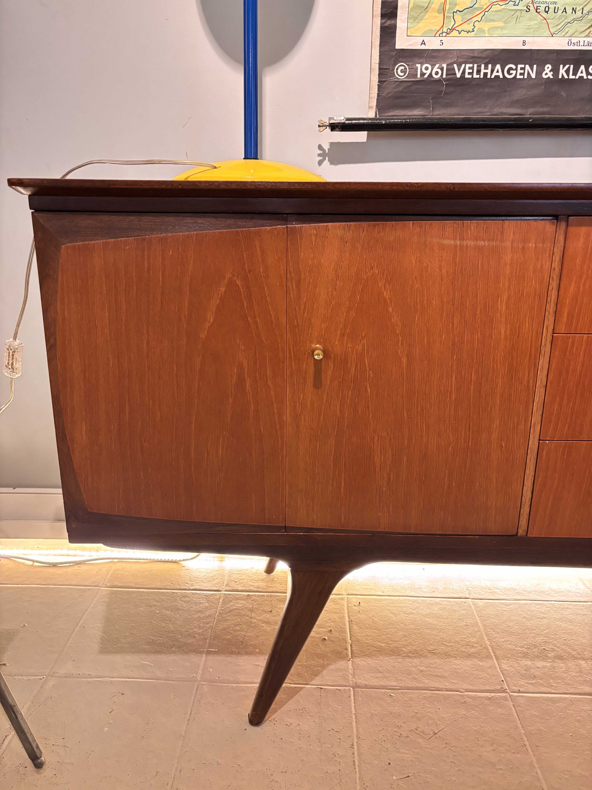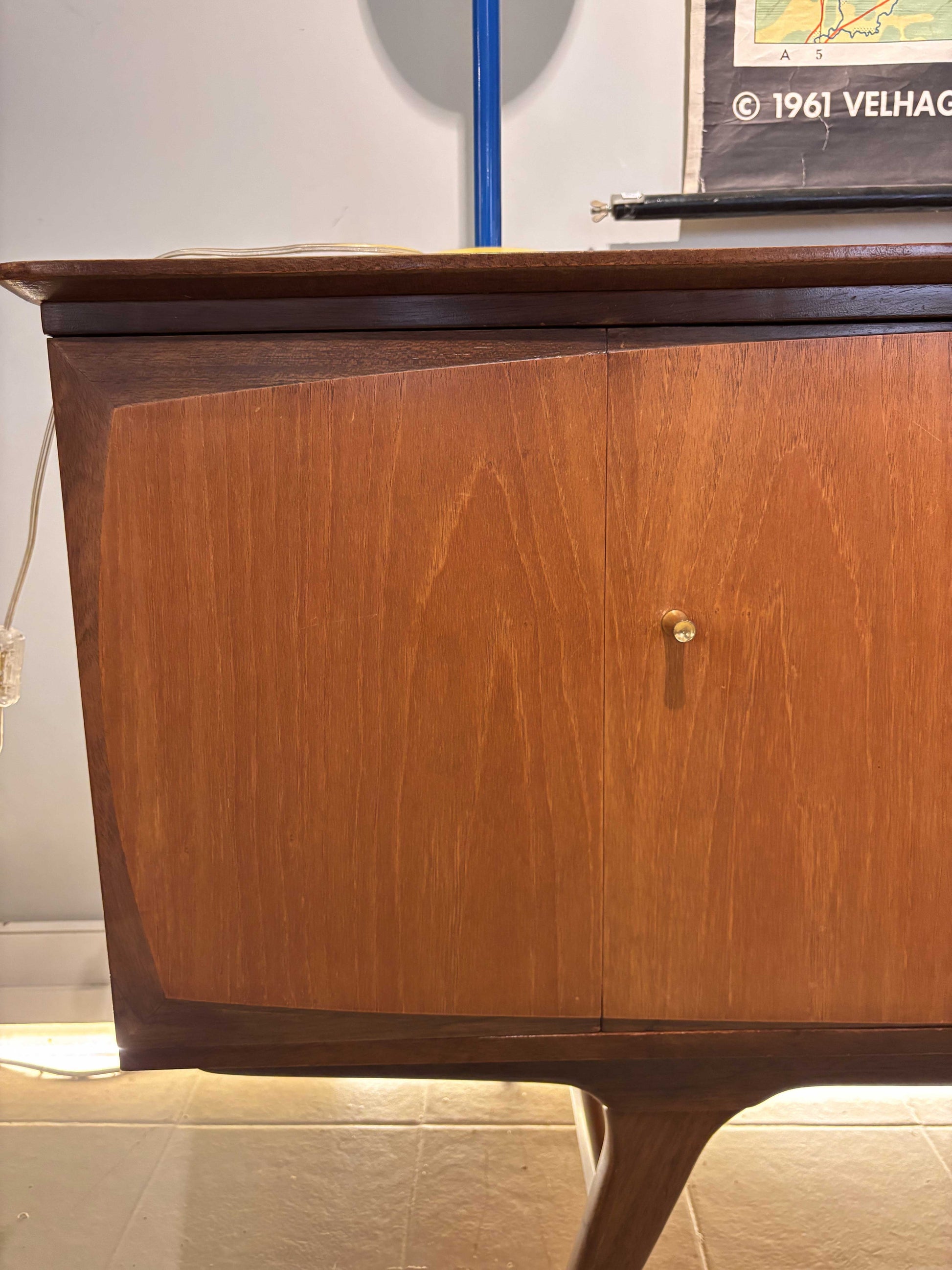 Aparador ingles de teca con tres cuerpos, con doble teca haciendo un dibujo sobre si mismo.