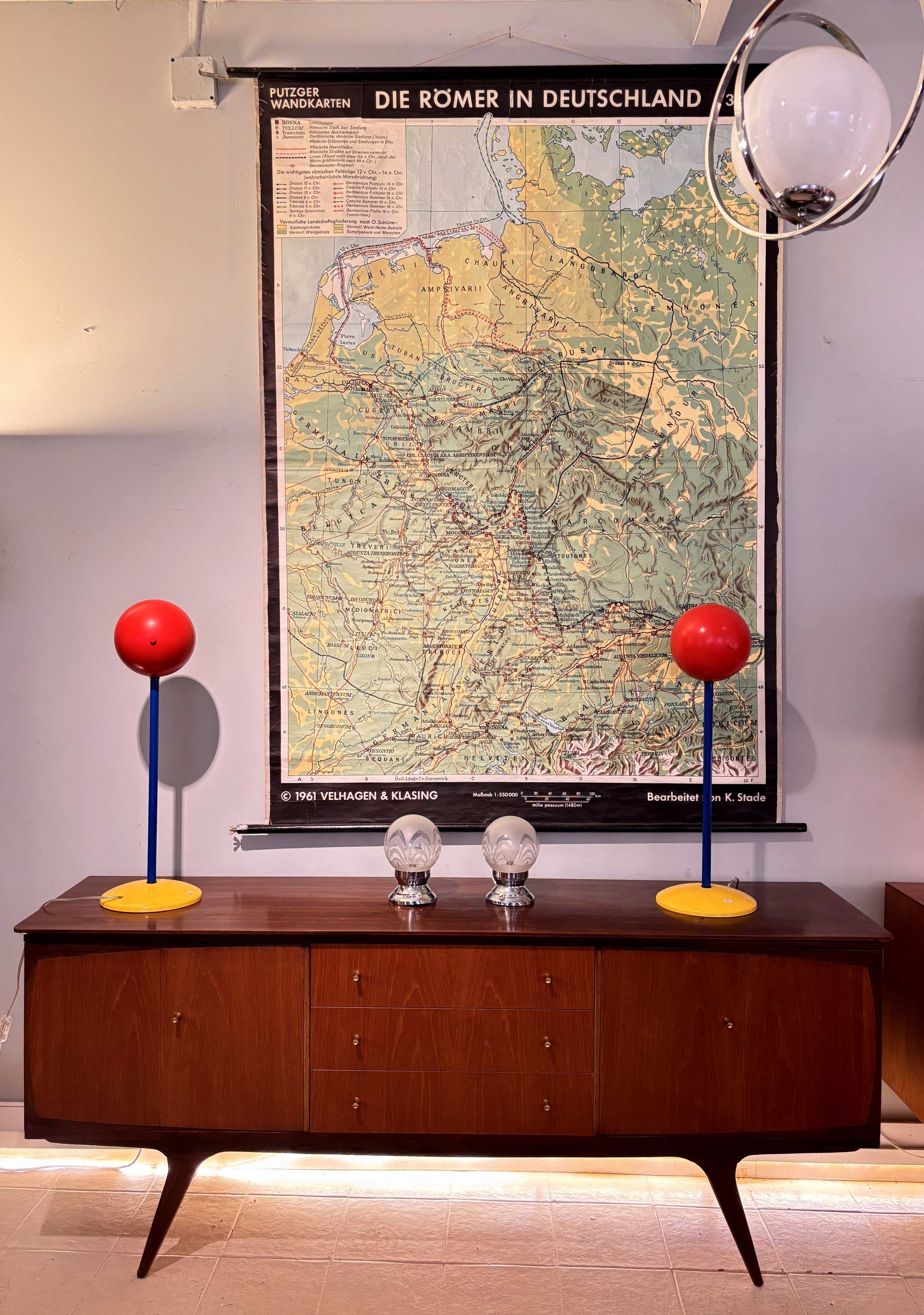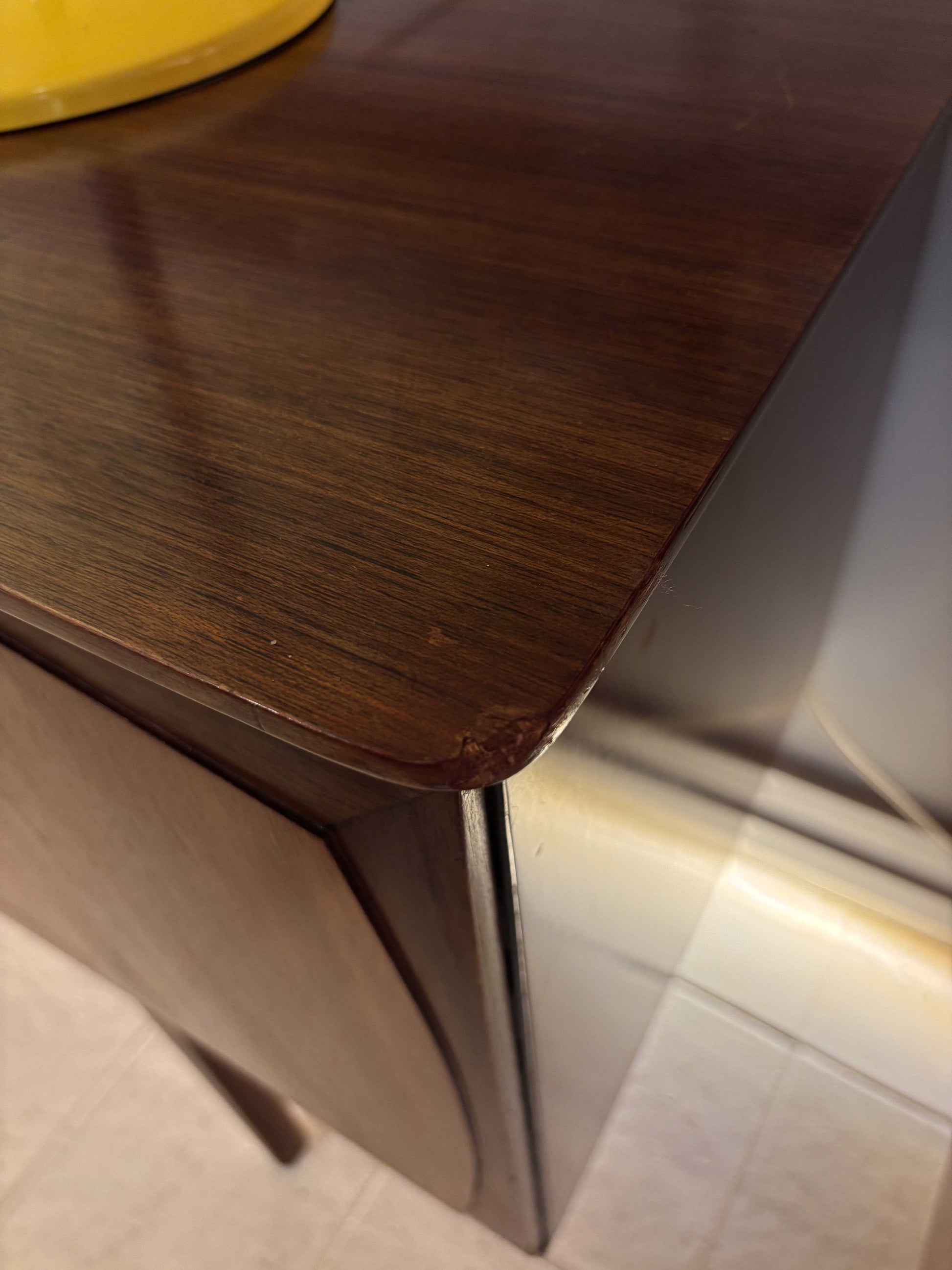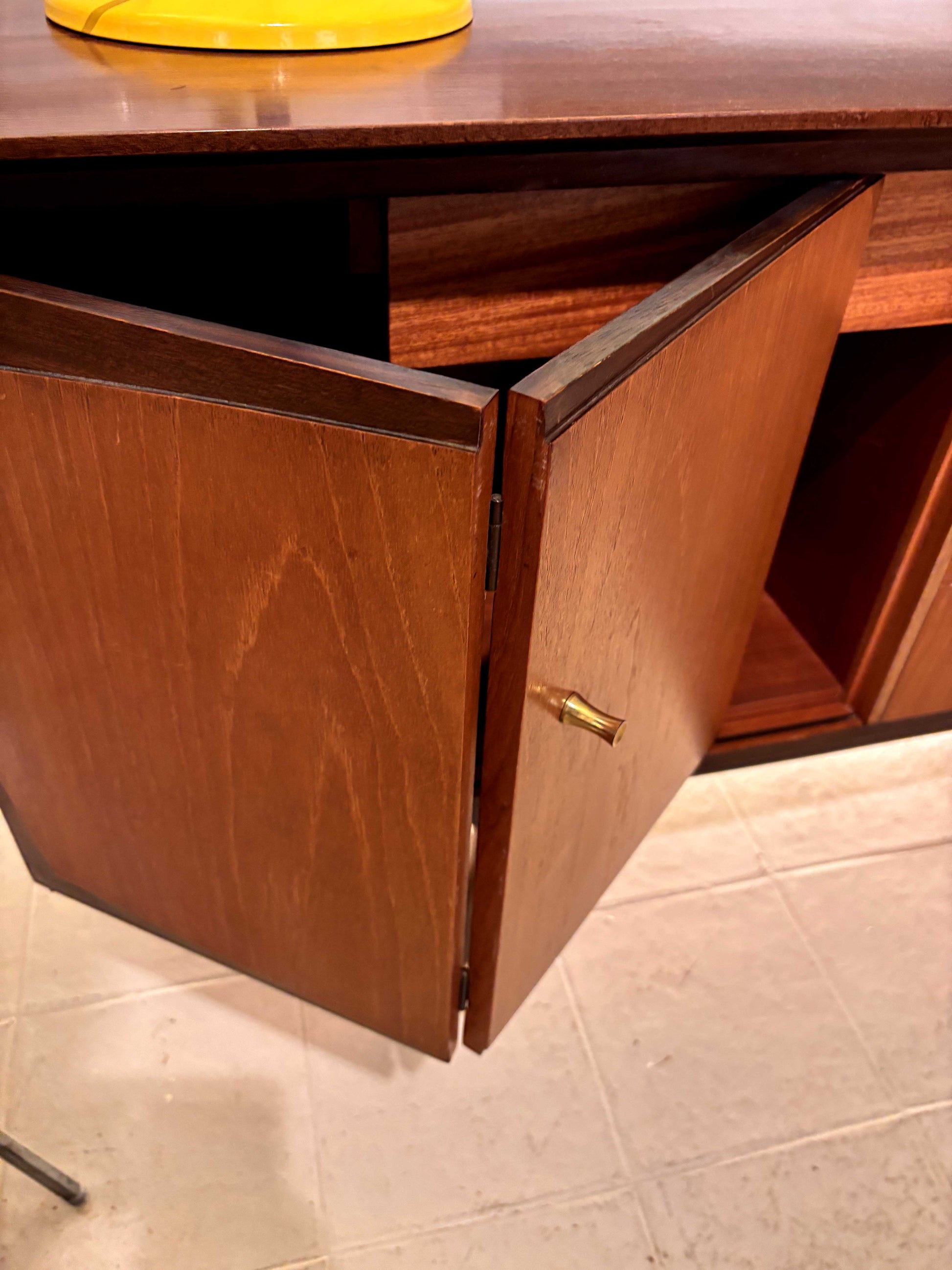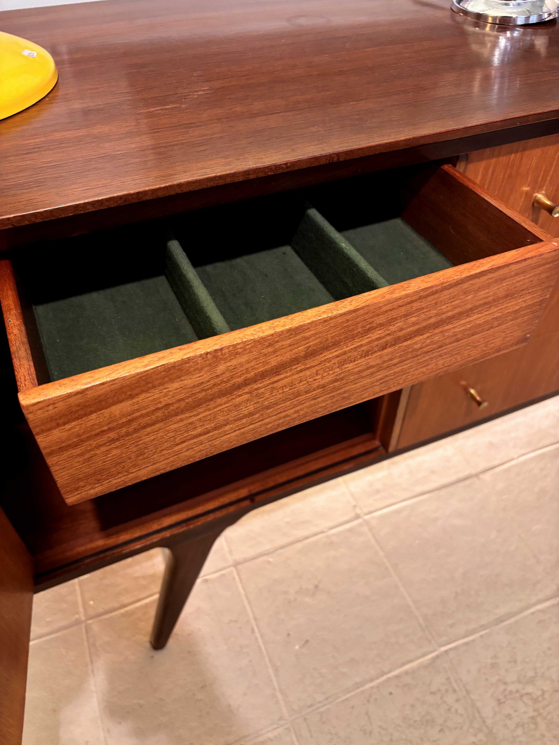 Aparador ingles de teca con tres cuerpos, con doble teca haciendo un dibujo sobre si mismo.