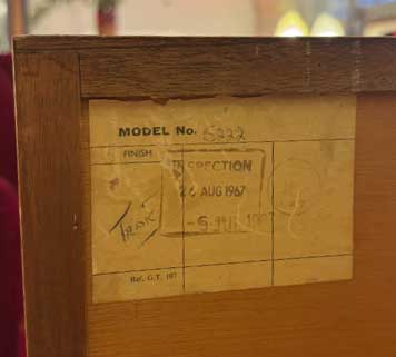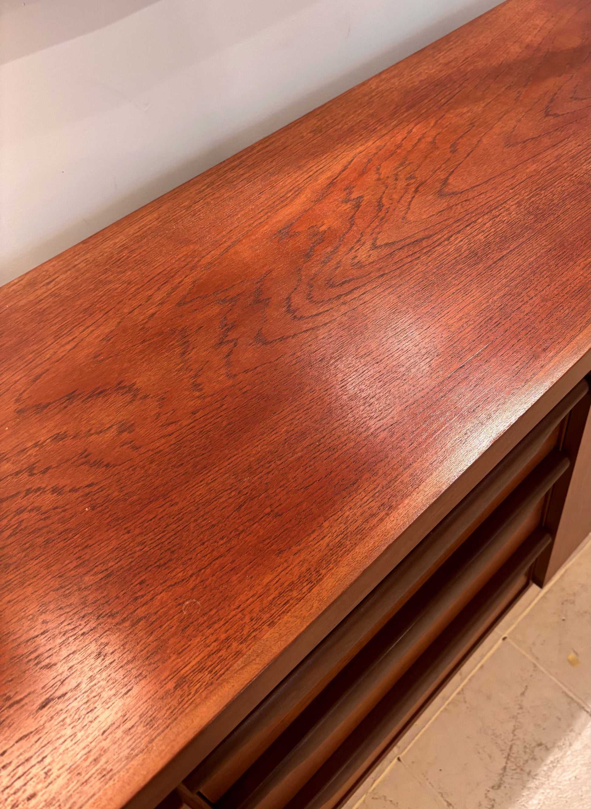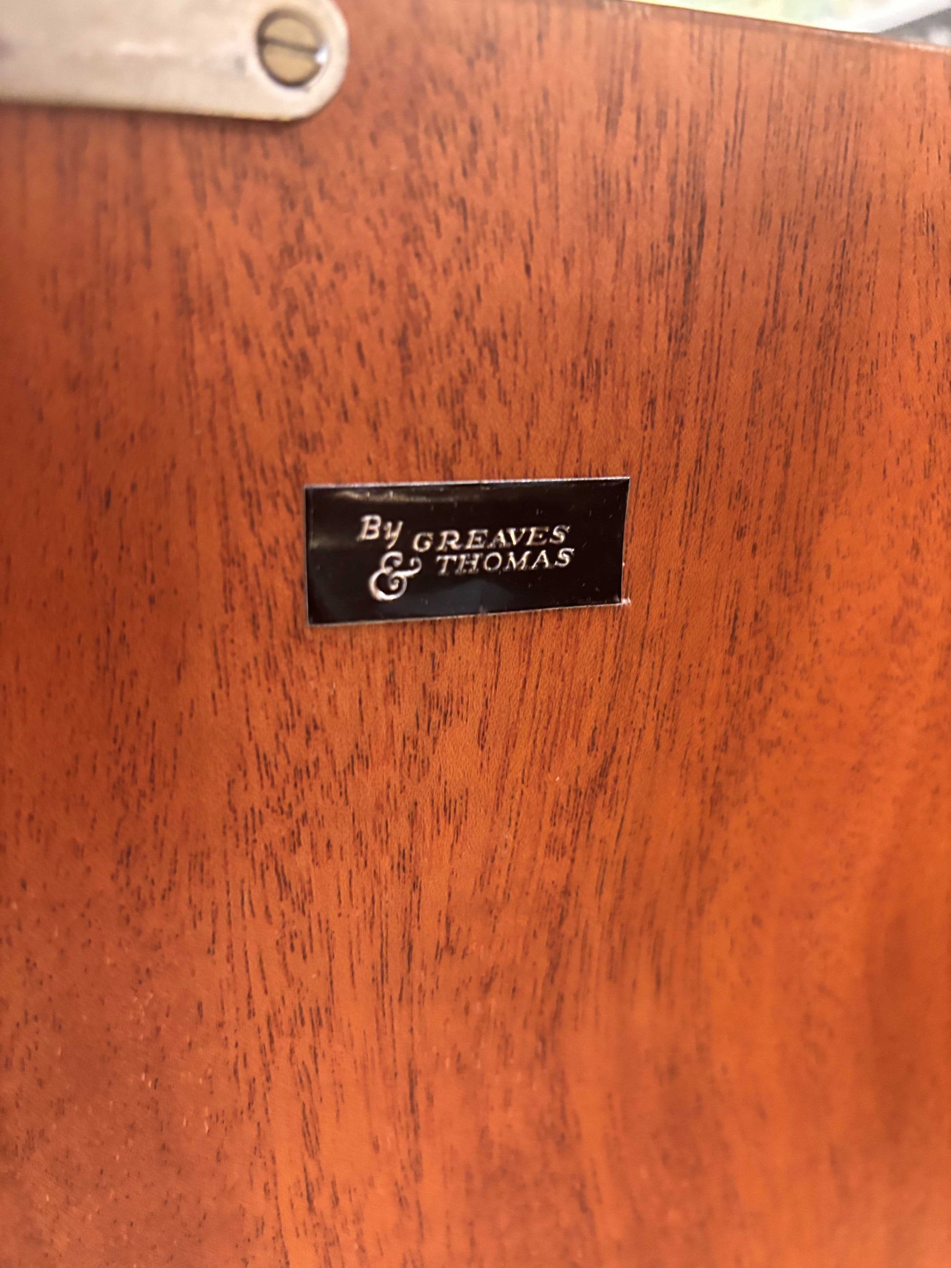 Aparador de teca inglés Greaves & Thomas, años 60s, viene firmado en su trasera.